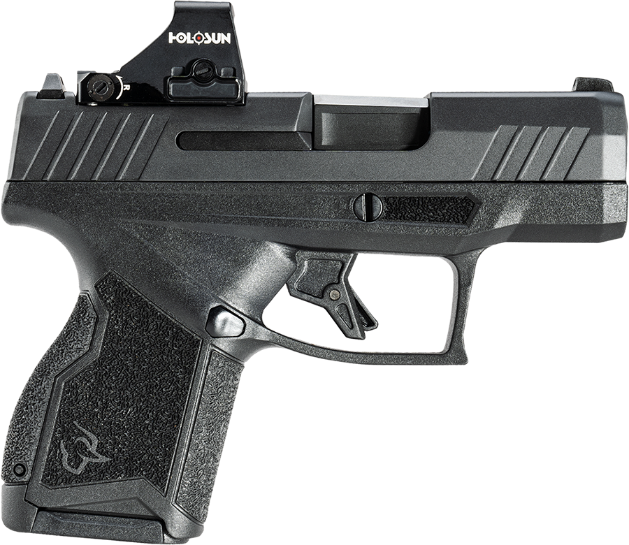 The new GX4 T.O.R.O. adopts the Taurus Optic Ready Option mounting system, which facilitates mounting of several popular micro-red dot sights. The T.O.R.O. system is designed around a factory optic-cut slide for those who desire the advantages of a low-print EDC handgun and the confident sight picture of a red dot.